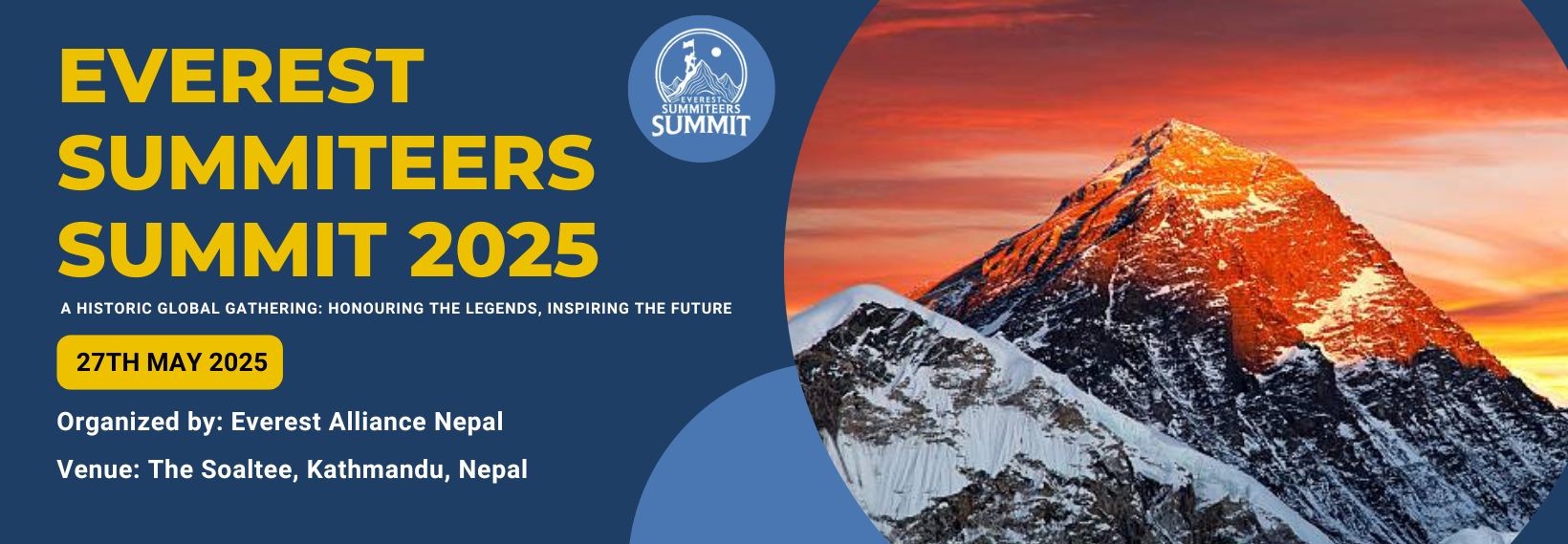 We firmly believe that summiting Everest is more than just an achievement, it is a unifying force that connects people across borders. By bringing together summiteers from around the world, we aim to foster a shared vision of adventure, accomplishment, and sustainability. Therefore, with this spirit and with great honor, we are delighted to share that we are organizing the Everest Summiteers Summit 2025, scheduled for May 27, at The Soaltee, Kathmandu, Nepal.